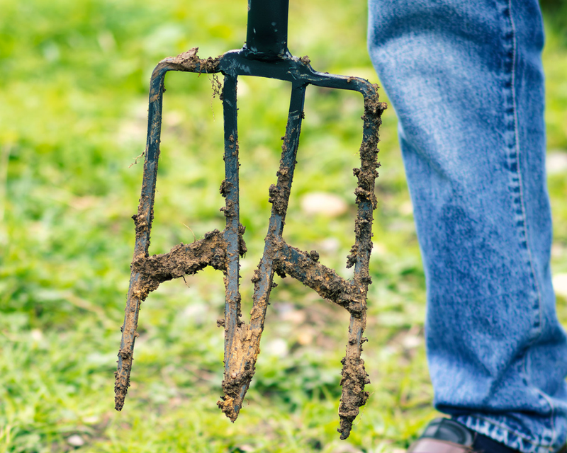 Soil packs between the tines. Lumps stay lumpy. You stop every thirty seconds to clean the fork — then grab a second tool to break up the clods.